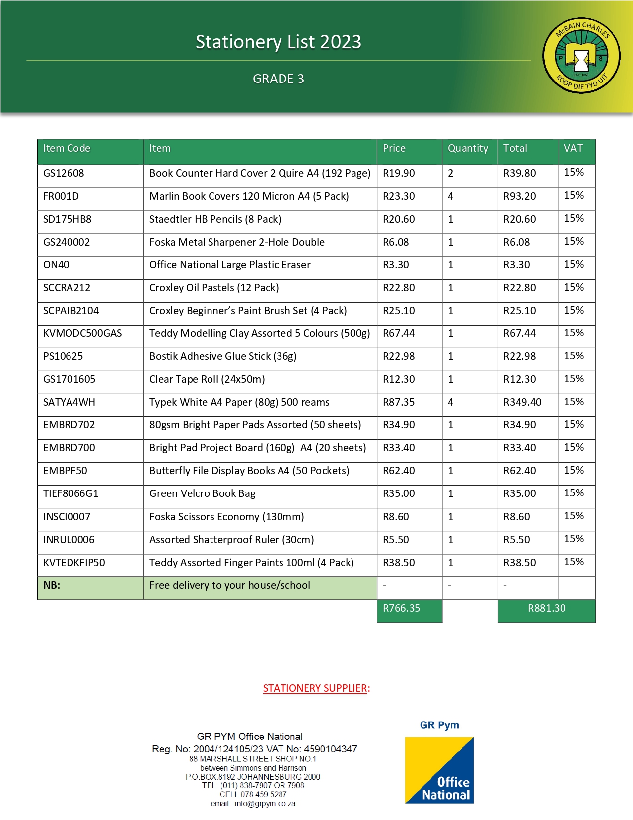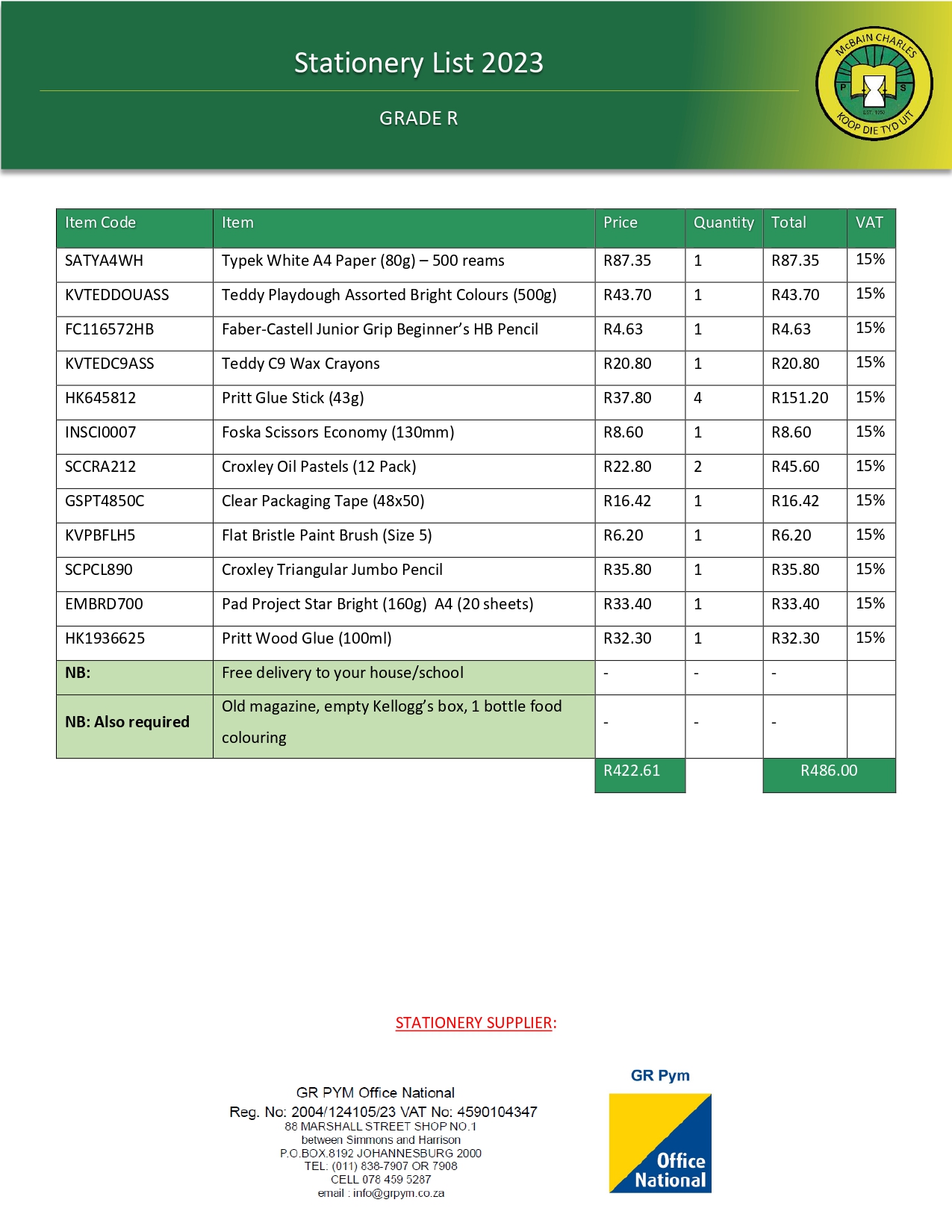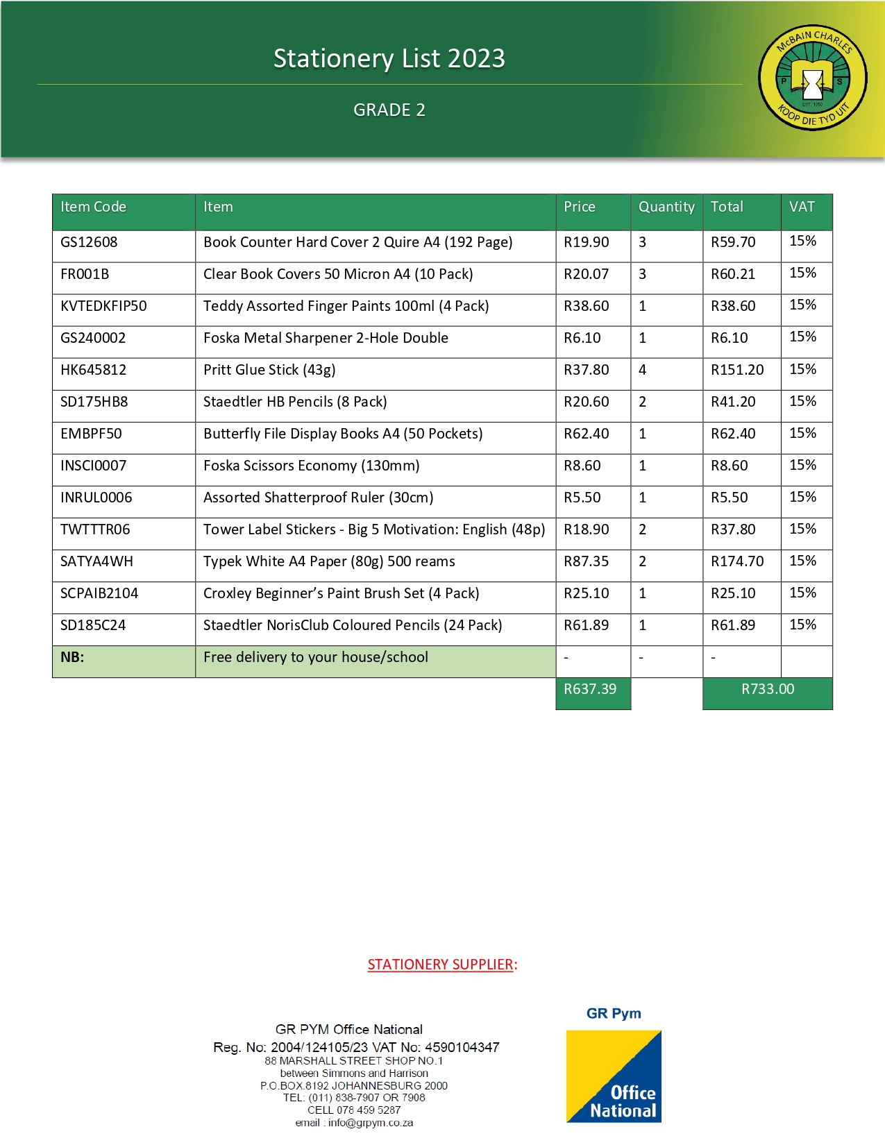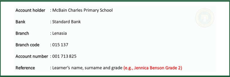 Thanks for Enquiring! Watch Watch this short video to learn the basics of registering to enrol your child at our school. Fee Structure: 2023 Registration Fee: Grade R - 7 R350-00 School Fees: Grade R SCHOOL FEES: R450-00 per month. STRUCTURE: Registration fee (R350-00) is deducted from school fees. School Fees: Grades 1 - 7 SCHOOL FEES: R850-00 per year. STRUCTURE: Registration fee (R350-00) is deducted from school fees. Payment Methods Card (swipe or tap), EFT, or Cash. Banking Details Stationery Lists Grade R Grade 1 Grade 2 Grade 3 Grade 4 - 7 Need some help? Contact our admin block for further enquiries or assistance with registration and fees. Contact us